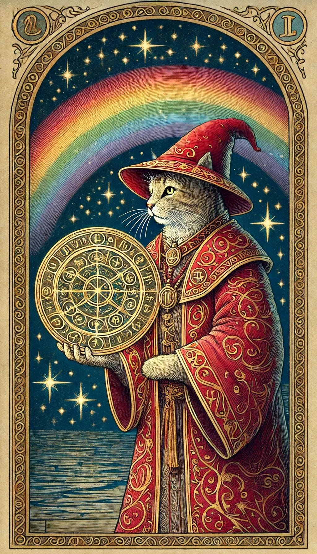[Image of the orange cosmic cat in radiant robes holding the portal disc]