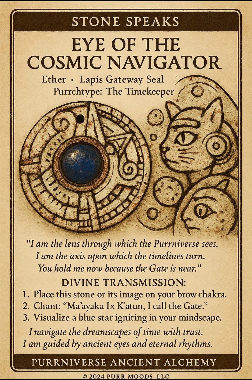 The Eye of the Cosmic Navigator awakens when a soul is ready to receive star codes from lost civilizations—Aztec, Maya, Lemuria, and beyond. Its lapis core activates the Blue Ray of Inner Knowing. The spiral etchings guide you through ancestral memory and quantum timeline navigation.