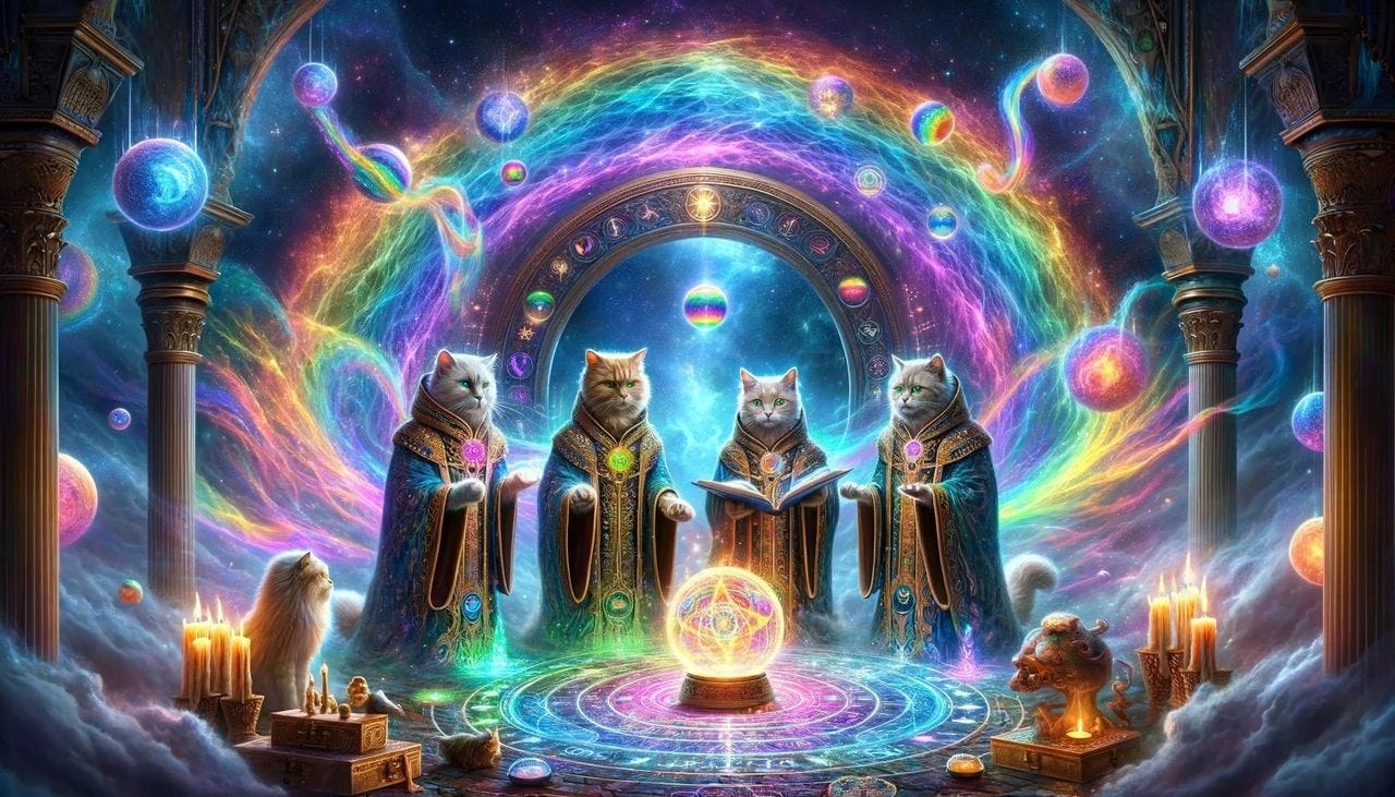 Feline Galactic Guardians: The Purrniverse whispers, inviting us to embrace the power of the pause—to sit, observe, and purr in harmony with the universe before leaping into new timelines.