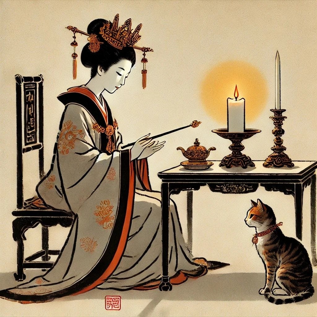 “Scrolls blessing from healer to healer, cat to cat, soul to soul. May your paws be steady, your whiskers be wise, your tail balance shadow and light, your purr the balm that awakens wholeness.”