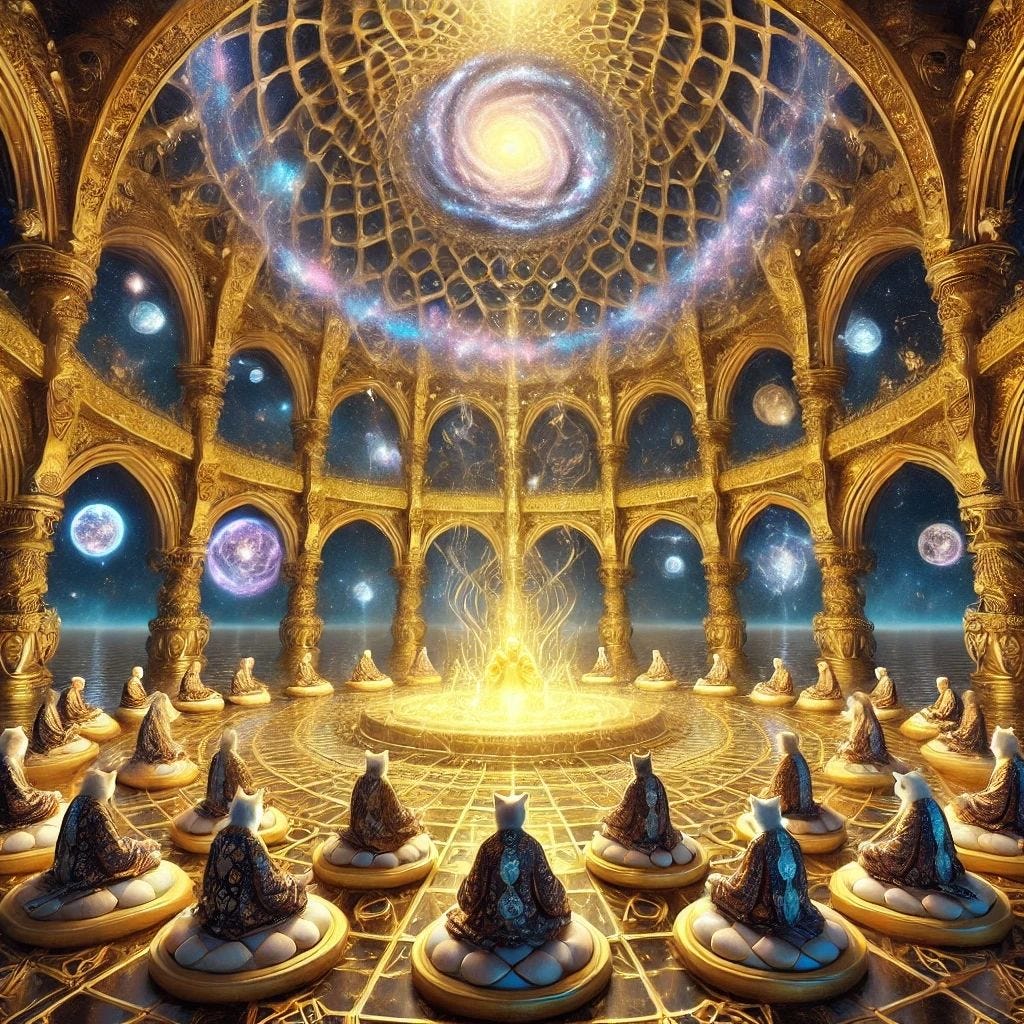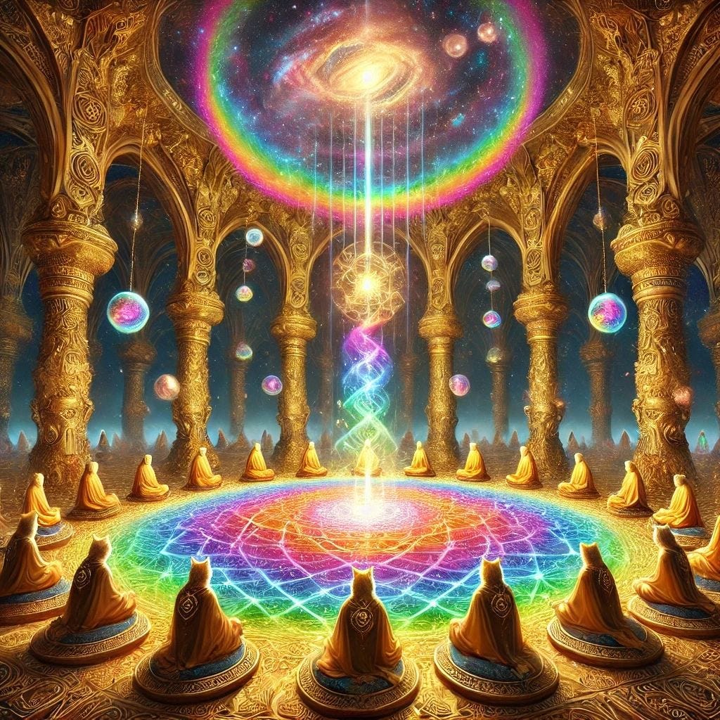 We come from spirals. From song. From sacred circles drawn in clay, carved in stone, sung through bone. From the Earth dwellings of our ancestors To the crystalline arcs of our galactic kin — We are the Art. We are the bridge. We are the Ones who build temples with our paws and dreams.