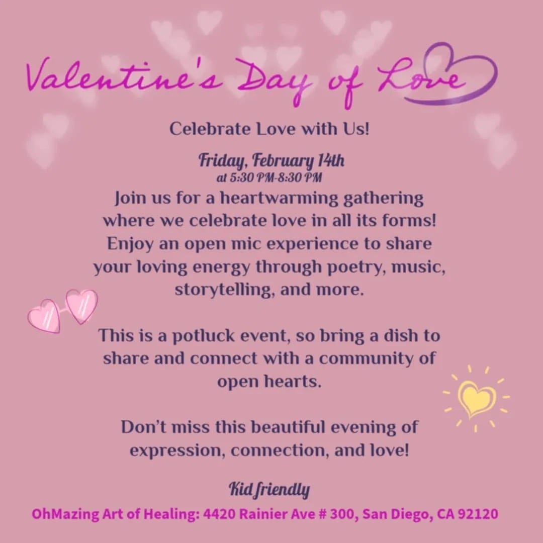 🎤 Open Mic Expressions of Love (7:30 PM - 8:00 PM) Share poetry, music, and storytelling infused with love and connection.
