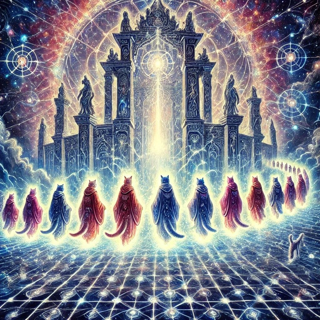 Within this realm, every being—be it feline, human, or cosmic traveler—has access to the secrets of quantum longevity, celestial medicine, and alchemical awakening.