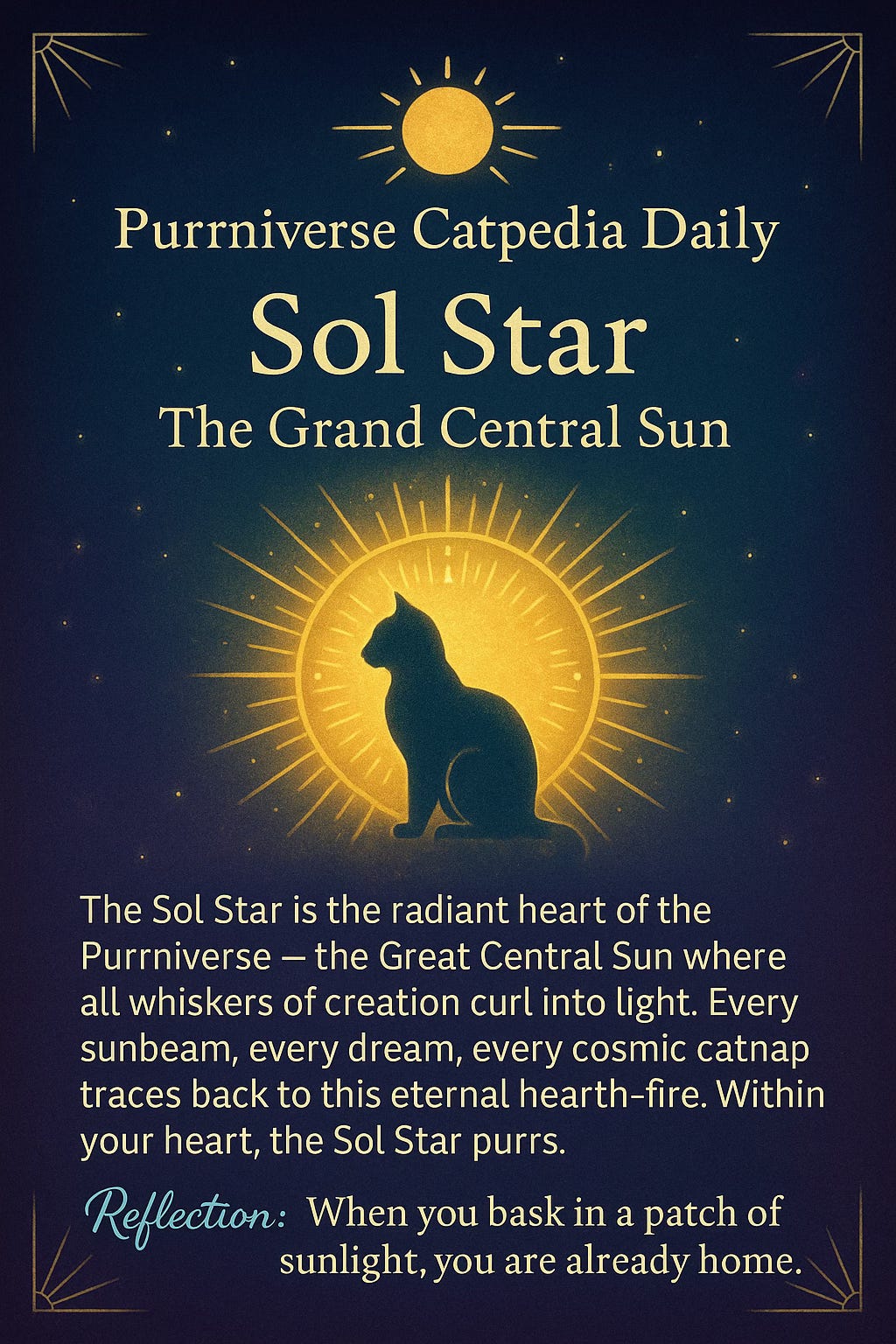 The Sol Star is the radiant heart of the Purrniverse — the Great Central Sun where all whiskers of creation curl into light. 🌌✨